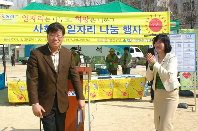 강서초등학교 운동장에서 양천구 저소득층을 위한 '사회적 일자리 나눔행사'를 개최했다. 양천구 내 사회복지기관 15개소가 참여해 일자리 신청과 함께 다양한 사회서비스를 알리고 서비스 신청도 함께 받았다.