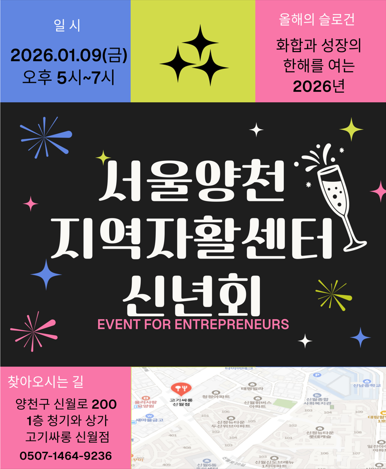 안녕하세요! **"화합과 성장의 한 해를 여는 2026년"**을 맞이하여, 서울양천지역자활센터에서 활기찬 새 출발을 다짐하는 신년회를 개최합니다.